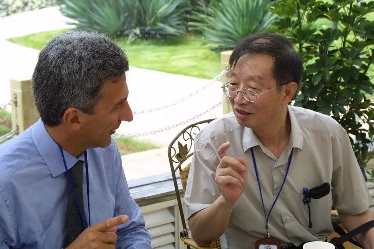 2005年刘永定研究员在第10届国际应用藻类学大会上与秘书长Roberto de Philips交流