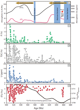 新元古代晚期到古生代早期海洋氧化程度的显著提高(即“新元古代氧化事件“)被认为可能与早期多细胞动物的出现和演化密切相关。然而近年来更多的地球化学指标和模型模拟的结果显示,晚新元古代到早古生代大气氧含量显著低于现代水平,海洋氧化还原呈现剧烈波动状态且总体氧化程度远低于现代海洋。因此可以说,新元古代晚期到古生代早期发生了低大气氧背景下的海洋氧化事件。在大型陆地植物登陆前海洋中有机碳的合成和埋藏过程是地表最主要的氧气来源,因此海洋生物碳泵的加强是造成这一时期大气和海洋氧化的重要因素,但究竟是何种因素促进了海洋生物碳泵目前存在很大的争议,学者们提出了多种观点,如初级生产者的演化、海洋营养物质增加、早期滤食性动物加速有机碳沉降等。