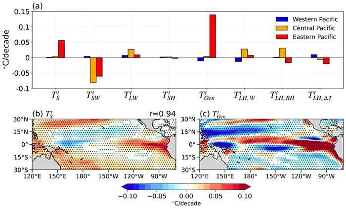 近日,中国海洋大学深海圈层与地球系统前沿科学中心和海洋与大气学院郑小童教授团队联合国外学者在热带海洋-大气相互作用与气候变化研究领域取得重要进展,提出风驱动的海洋环流变化对热带太平洋变暖空间结构具有重要贡献的新观点。研究成果以“Historical changes in wind-driven ocean circulation drive pattern of Pacific warming(风驱海洋环流的历史变化太平洋变暖形态的驱动作用)”为题,发表于Nature Communications。