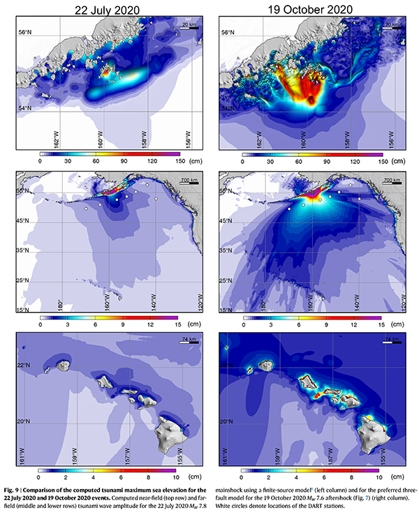 2020年7月22日舒马金群岛海域发生7.8级地震,震源深度为25至40公里,阿拉斯加近岸及远海未发现明显海啸影响。三个月后的10月19日,该海域再次发生7.6级地震,震源深度为5至40公里,长周期地震矩张量显示断裂带以太平洋板块内东倾50度的走滑断层为主,这与通常意义下该板块内应力状态分布所应有的断层结构特征严重不符;同时在此次地震发生后,分布于阿拉斯加近岸、阿留申群岛远海、夏威夷群岛近岸的水位观测站点均侦测到强烈海啸信号,这又与走滑类断层无法有效激发大规模海啸的规律相违背。此次地震海啸事件带来的双重疑问在国际引发广泛关注,但学界一直未有较为信服的答案。