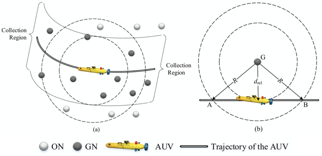 近期,河海大学信息学部物联网工程学院韩光洁团队面向水下数据高效感知与收集的重大需求和科学问题,创新提出了基于异构设备协同的水下数据收集方案。针对水声传感网在数据收集过程中面临的高能耗和耗能不均问题,提出一种基于AUV(Autonomous Underwater Vehicle)位置预测的数据收集算法。AUV按照设定的轨迹在网络中航行,并对轨迹附近的节点数据进行收集。为了克服“热区”问题,设计一种轨迹调整机制,周期性地对轨迹进行调整,并提出一种可靠的时间分配机制来保证节点和AUV之间的有效通信时长。