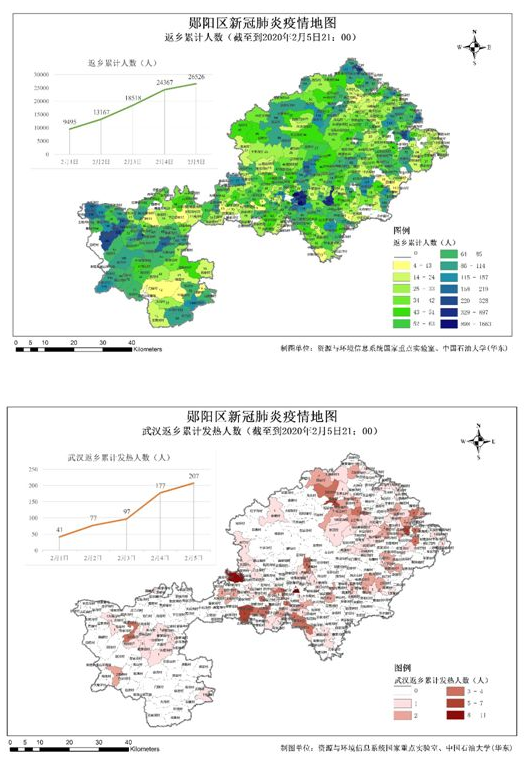 “疫情地图”呈现全区累计返乡人数、武汉返乡人数、当日发热人数、累计发热人数、武汉返乡发热人数等疫情空间分布和发展态势。疫情地图为政府提供第一手的权威疫情动态信息和科学、有效、实用的疫情监控信息,做好防控措施。